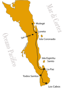 Por la mañana, salida con coche de alquiler en dirección a La Paz, capital de Baja California Sur .A lo largo del recorrido, sugerimos una parada en Todos Santos, un pequeño pueblo que se asoma al Océano Pacífico, donde bosquecillos de mango se alternan con palmeras datileras y donde las largas playas desiertas son la principal atracción del lugar. Todos Santos es famoso por la presencia del Hotel California, el mítico hotel de la canción homónima de los Eagles.Llegada a La Paz y alojamiento en el hotel. En la tarde, posibilidad de realizar la visita a la ciudad capital de Baja California Sur. Nacida en la bahía más amplia del Mar de Cortés, debe su encanto al “malecón”, el paseo marítimo flanqueado por palmeras y edificios de tonos pastel.
